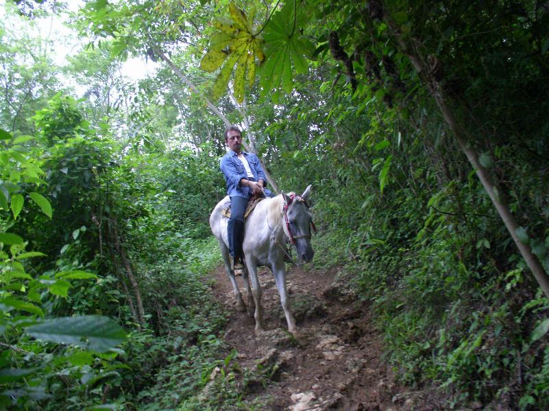 Venerdì 12 agosto: sveglia alle 7:30, solita colazione abbondante e alle 9:00 siamo in macchina verso lo stato del Tabasco dove ci aspetta la parte più avventurosa ed eccitante del nostro viaggio, ovvero l’eco turismo di Kolem Jaa. Appena fuori S. Cristobal ci fermiamo ad un mini-market ed acquistiamo provviste per il viaggio, ovvero banane, biscotti, cracker, dei piccoli croissant e bevande per la non particolarmente esosa cifra di 40 MX$ (circa 3 eur), quindi iniziamo il viaggio. Non so bene come 'inquadrare' questo trasferimento, tanto affascinante quanto massacrante, ma diciamo che mi sono messa alla guida, 220 km o meglio 5 ore di saliscendi lungo foreste e villaggi, curve e topes, bimbi e cani, capre, cavalli e braccianti, fortuna che lo Ste non soffre la macchina perché continuavo a frenare, accelerare e curvare, su e giù.... Come si muoverà tutta la gente che incontriamo in questi sperduti villaggetti? Probabilmente le loro giornate saranno tutte simili le une alle altre... Persa in queste riflessioni, nel momento in cui si pensa che non è più finita, che non arriveremo più, e non ce la facciamo più di questa strada, si incomincia ad intravedere qualche palma e l’indicazione della città di Teapa. Facciamo benzina (150 MX$ - 12 eur), attraversiamo l’intricata cittadina e seguiamo le indicazioni prima per Tacotalpa e poi per Tapijulapa fino a che, come un miraggio, iniziano i cartelli con la scritta Kolem Jaa.