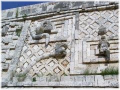 Il caldo, come pure i mosquitos, si fa via più opprimente man mano che scorrono le ore. Torniamo in hotel e dopo una doccia rinfrescante torniamo all’ingresso di Uxmal, fino al bar-ristorante dove ci rifocilliamo con un buon brunch a base di club sandwich e quesadilla, osservando i pullmoni che arrivano, solo a quest'ora, copiosi scaricando turisti che a malavoglia abbandonano l’aria condizionata del mezzo per scendere nella canicola della tarda mattinata e visitare il sito.